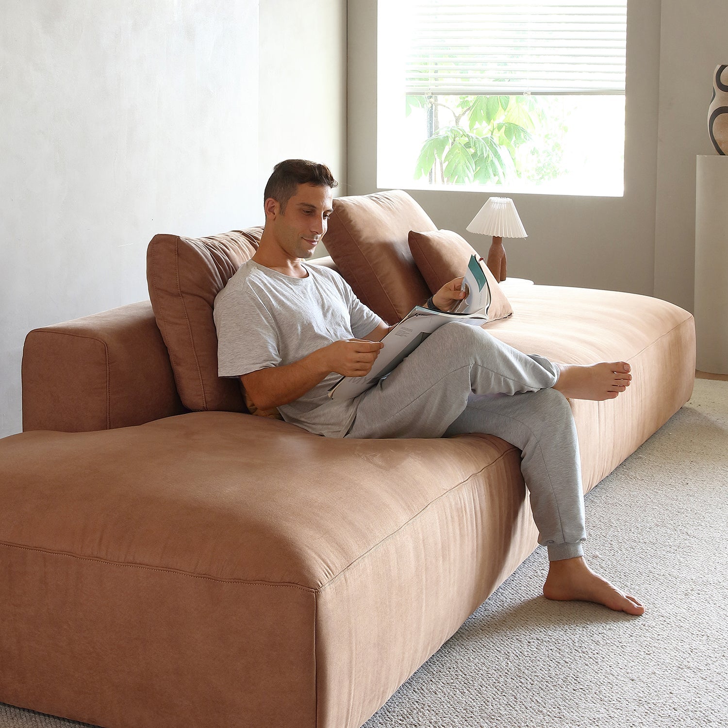 The designers have curated a contemporary low sofa with deep plush seats for supreme comfort and relaxation. Even the longest legs and sturdiest thighs would exclaim, Finally, a sofa that gets me.